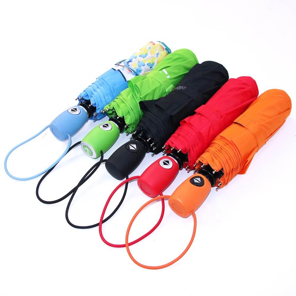 How to Choose Them Mini printed umbrellas come in a variety of colors, shapes and price points. You should choose a color that compliments your logo and message. Bright colors stick out but avoid going with abrasive colors, since some people would rather go wet than go in fluorescent orange.